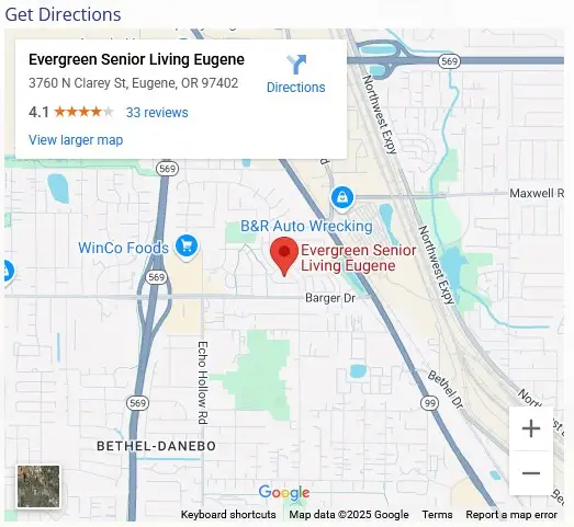 Our beautiful community in Eugene, Oregon gives you access to multiple levels of care, all on one campus. Those choosing Independent Cottage living can enjoy an all-inclusive, maintenance-free lifestyle with peace of mind and security. Should your health care needs change over time, you have available support for Assisted Living at Evergreen Senior Living and Memory Care services at Evergreen Memory Care right across the street.